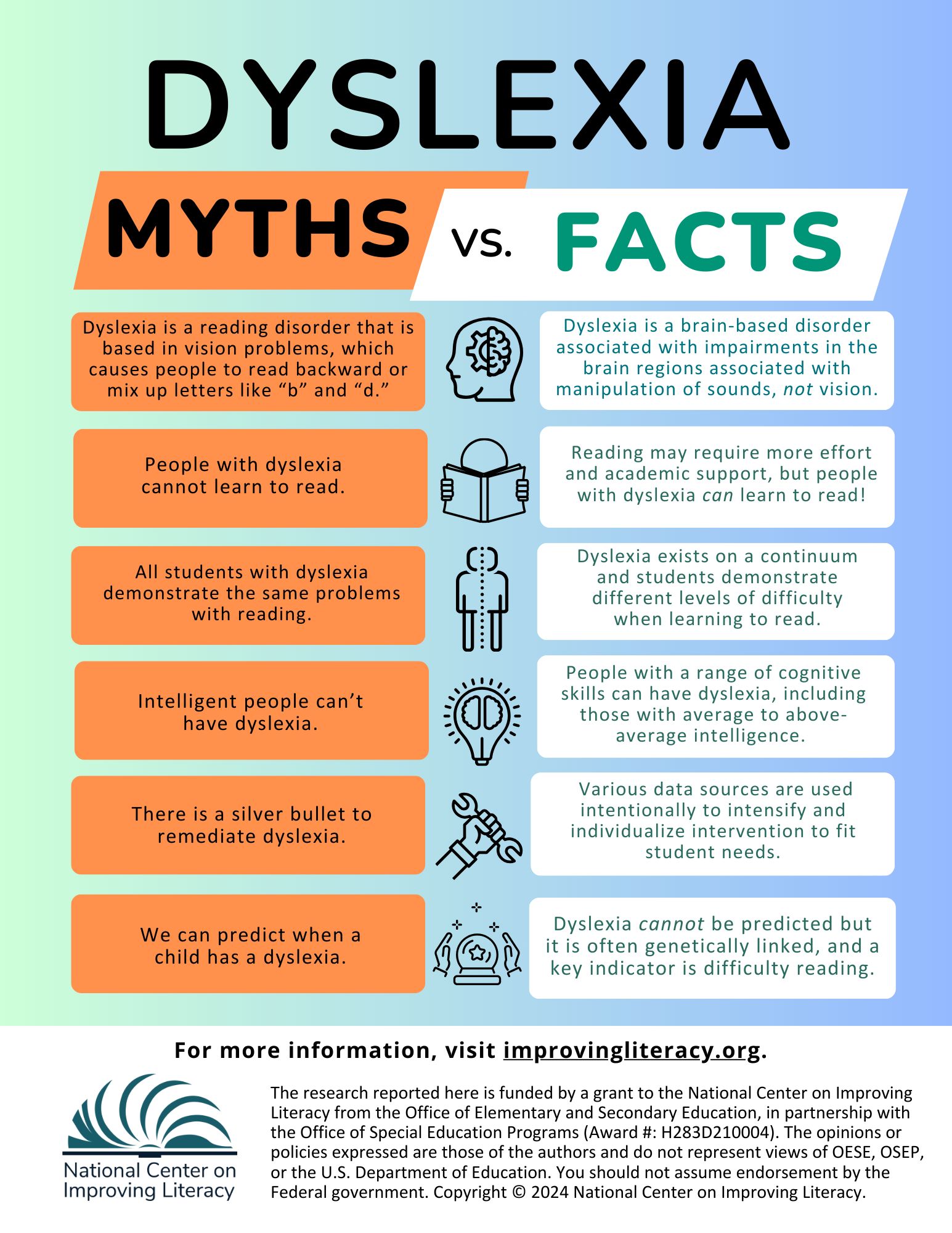National Center on Improving Literacy. (2024). Understanding Dyslexia: Myth vs. Facts. https://www.improvingliteracy.org/resource/understanding-dyslexia-myth-vs-facts