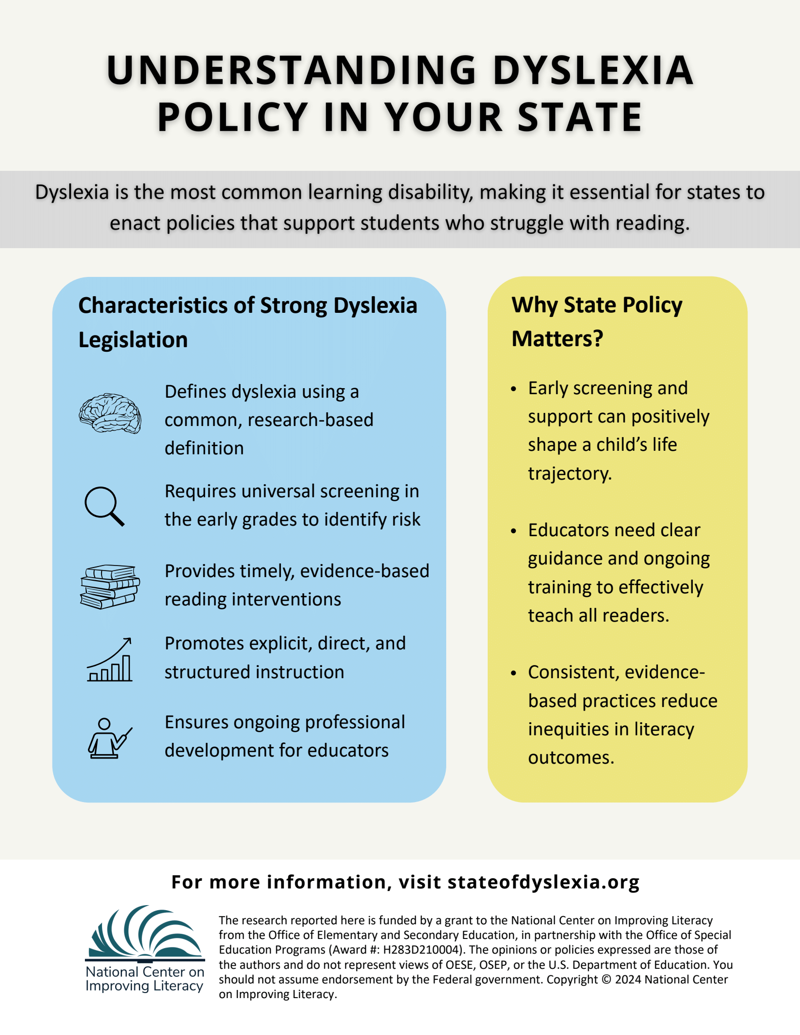 Teachers must be equipped with the knowledge and tools to teach reading effectively. Strong policies support educator training in dyslexia, screening practices, and evidence-based instruction.